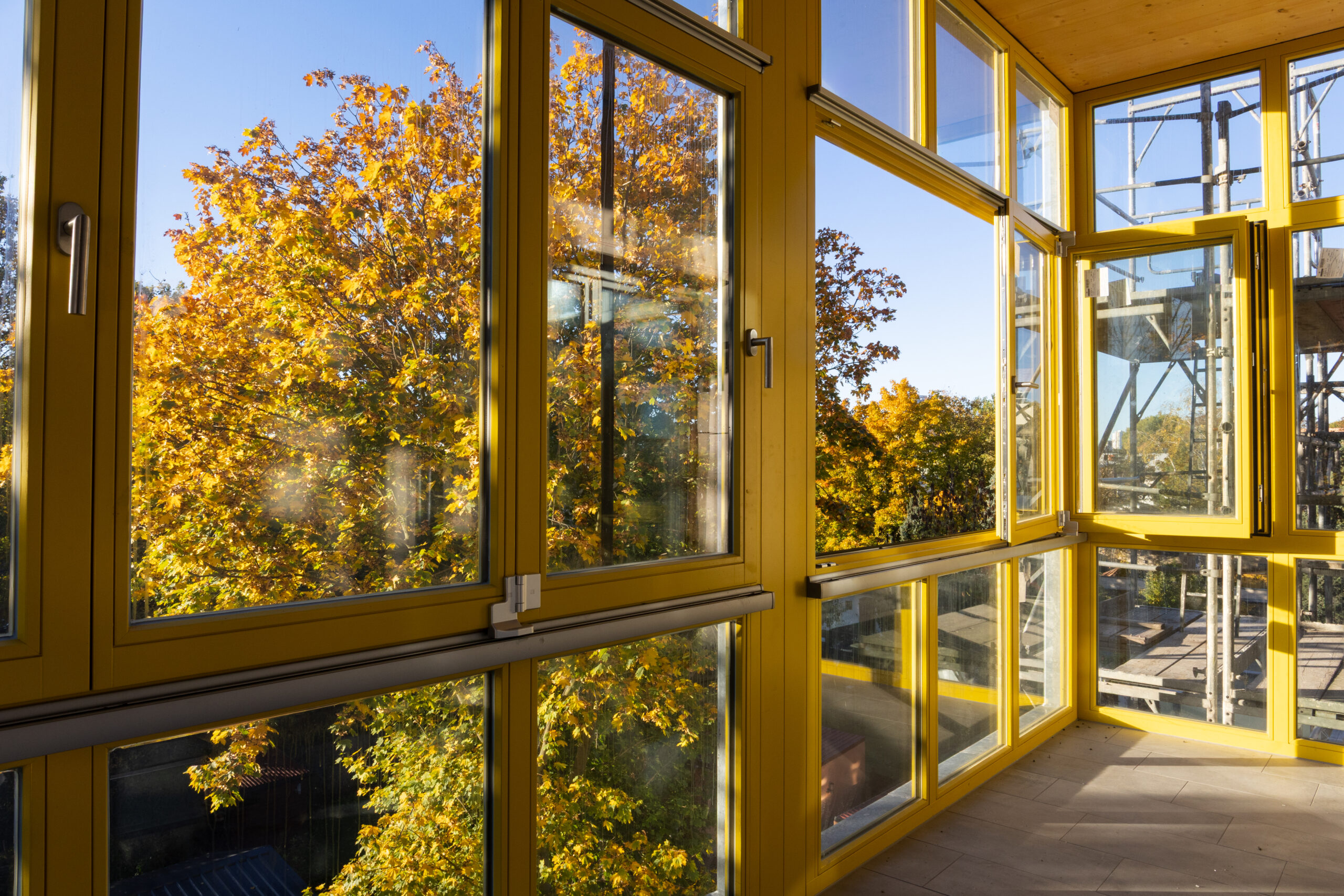 The project’s distinctive ecological approach is characterized by the extensive use of timber, both in the load-bearing structure and in the facade. CO₂ emissions were significantly reduced over the building’s lifecycle through fulfilling the KfW 55 energy efficiency standard requirements and by minimizing the use of concrete by using it solely for the slab foundation and not including a basement.