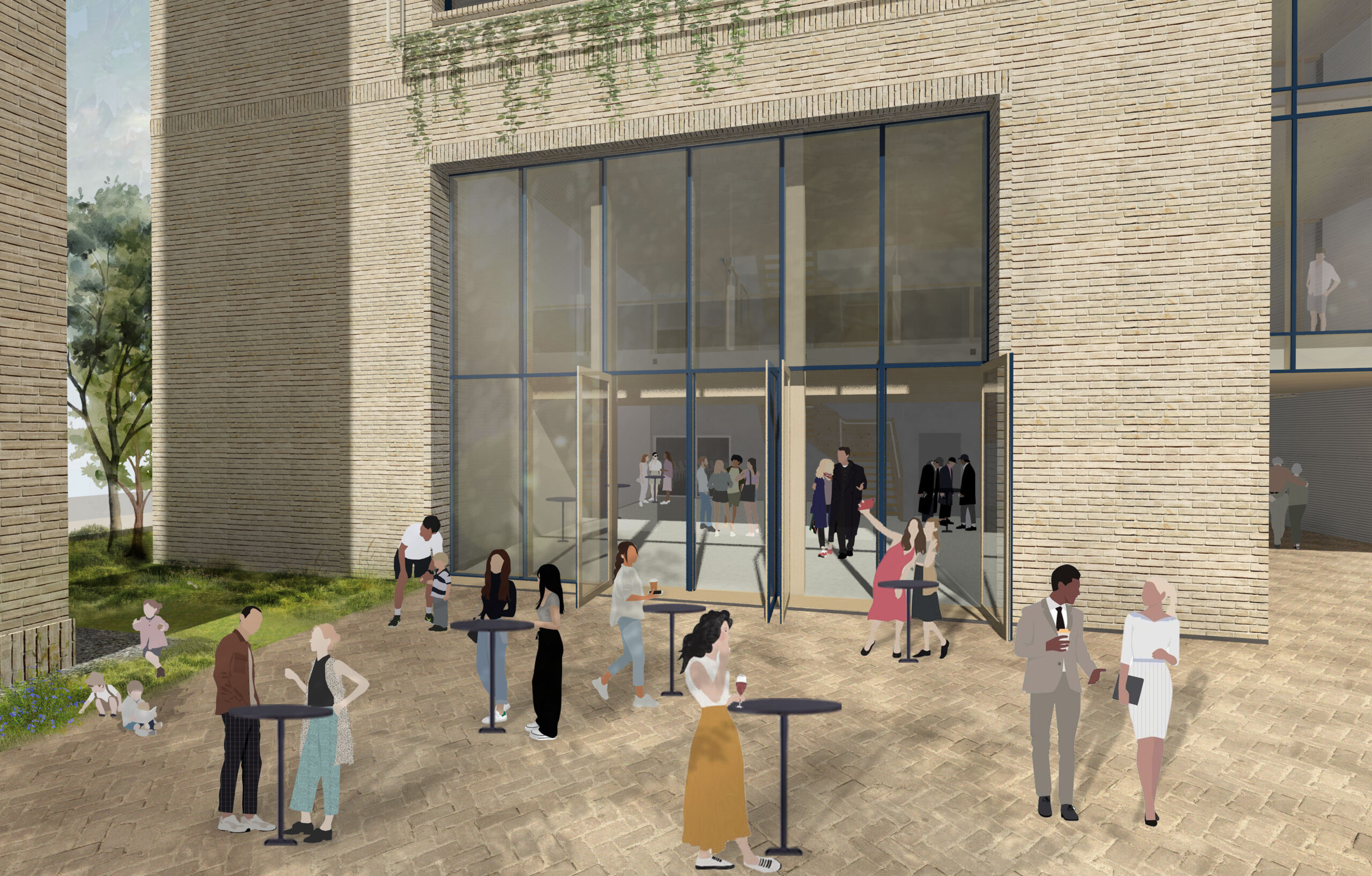 Im Erdgeschoss bildet ein großzügiger Multifunktionsraum das Herzstück des Hauses – ein Ort der Begegnung, der für Gottesdienste, Konzerte, Lesungen oder Gemeindefeste genutzt werden kann. Die angrenzende Empfangshalle öffnet sich zum öffentlichen Vorplatz und schafft damit eine fließende Verbindung zwischen Gemeinde, Diakonie und Stadt.